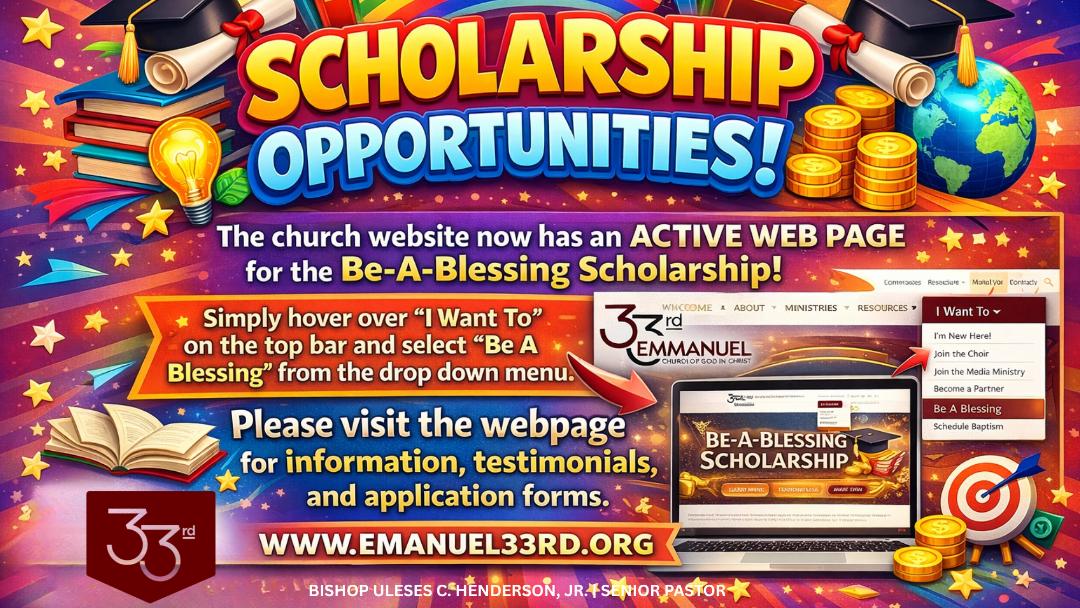 Be-A-Blessing Scholarship dedicated to all graduating high school seniors that are members here at Emmanuel. So, if you are looking for scholarship opportunities to help pay for college, look no further.