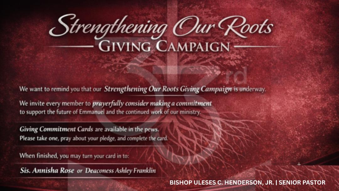 Please take time to complete your card today. Remember to turn in your completed card to Sis. Annisha Rose or Deaconess Ashley Franklin by April 12th. Thank you for strengthening the foundation of Emmanuel for the generations to come.